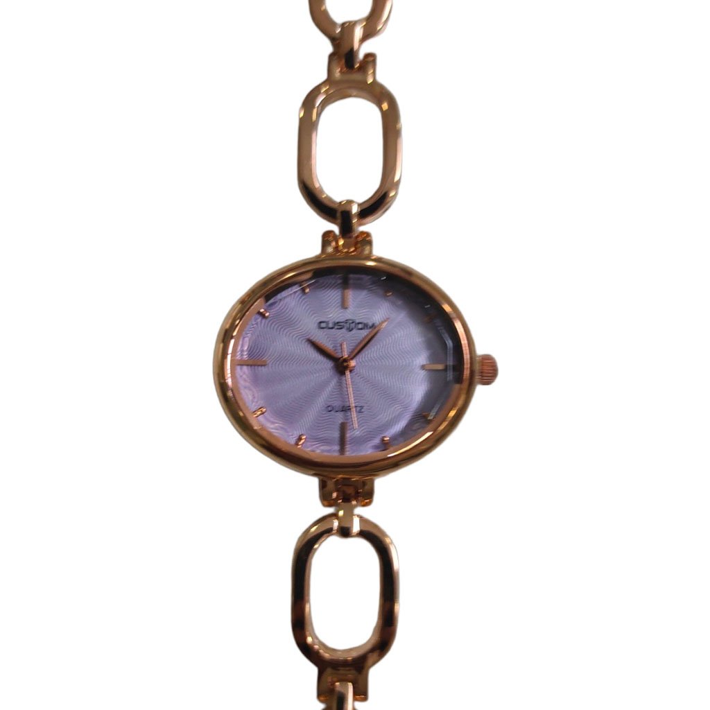 Watch Display = Analog,Dial Color = Purple,Case Shape = Round,Strap Materials = Metal Belt,Strap Color = Rose Gold