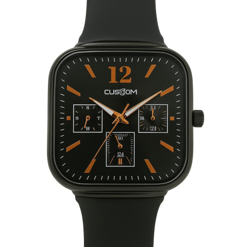 Dial Color = Black,Case Shape = Square,Strap Materials = Rubber Belt,Strap Color = Black
