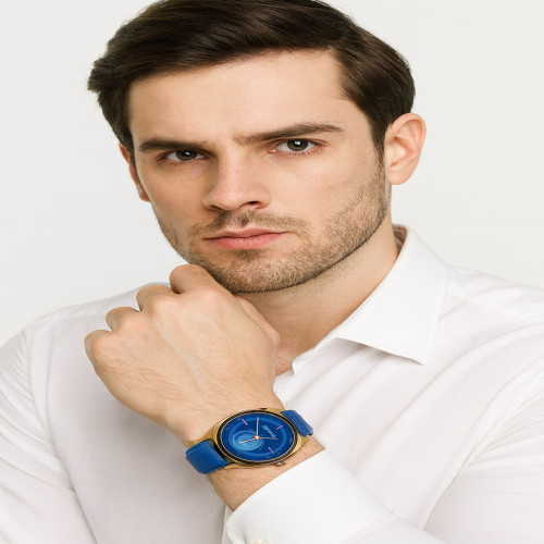 Dial Color = Blue,Case Shape = Round,Materials = Leather ,Strap Color = Blue