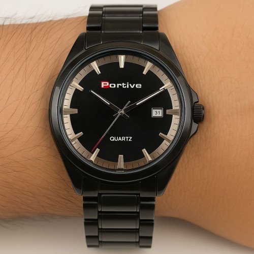 Dial Color = Black,Case Shape = Round,Strap Materials = Metal Belt,Strap Color = Black