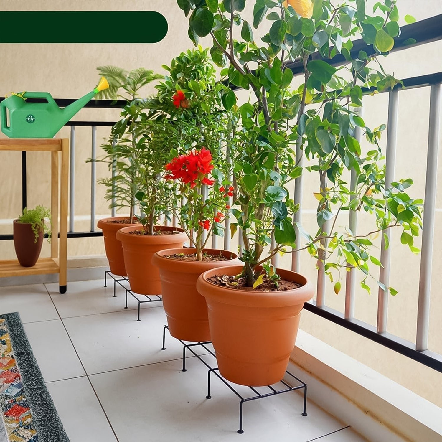 Metal Rectangle Balcony Plant Stand Set